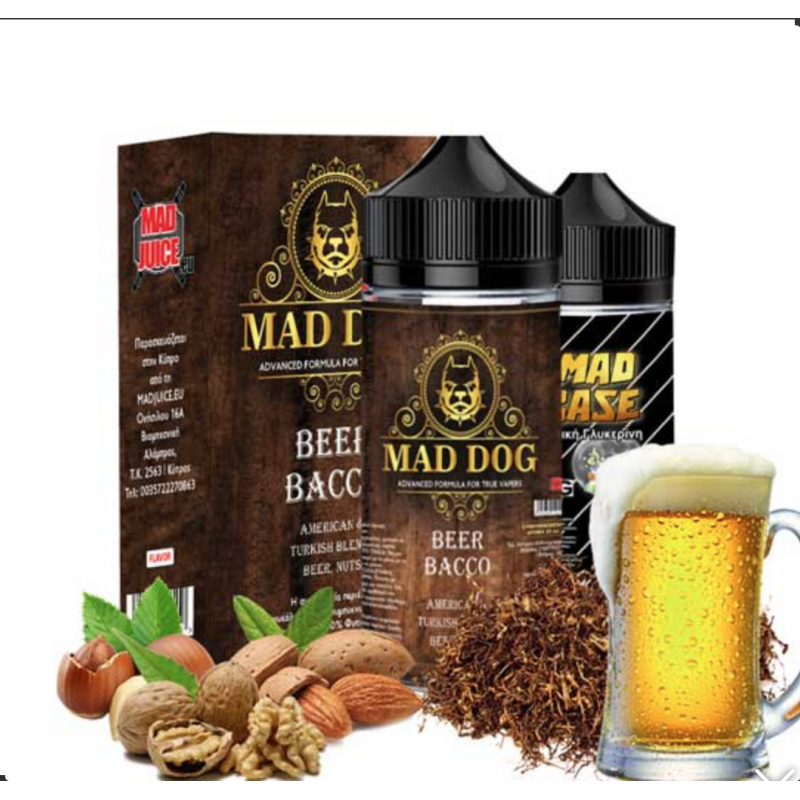 Το Mad Juice - Beer Bacco 20ml/100ml bottle flavor έχει ασύγκριτη γεύση από ποικιλίες αμερικάνικου και τούρκικου καπνού μαζί με ένα εξαίσιο αρωματικό συνδυασμό ξηρών καρπών και μπύρας.